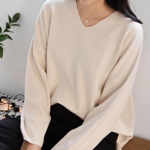 [옷자락]여성 비스코스 루즈핏 V넥 88사이즈 심플 니트