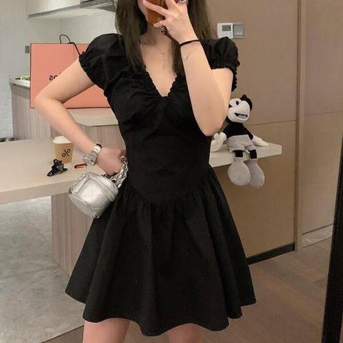 [셀러허브_여성트랜드패션]ONM 브이넥 미니 원피스 반팔 데이트룩 A라인