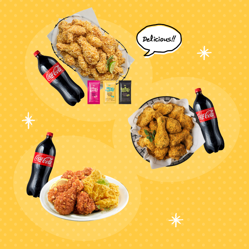 [최대15%할인] BHC 치킨+콜라1.25L (후라이드&양념 반반, 뿌링클, 콰삭톡)