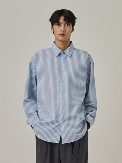 [아날로그무드] 데일리 세미 오버 스트라이프 셔츠 (블루)