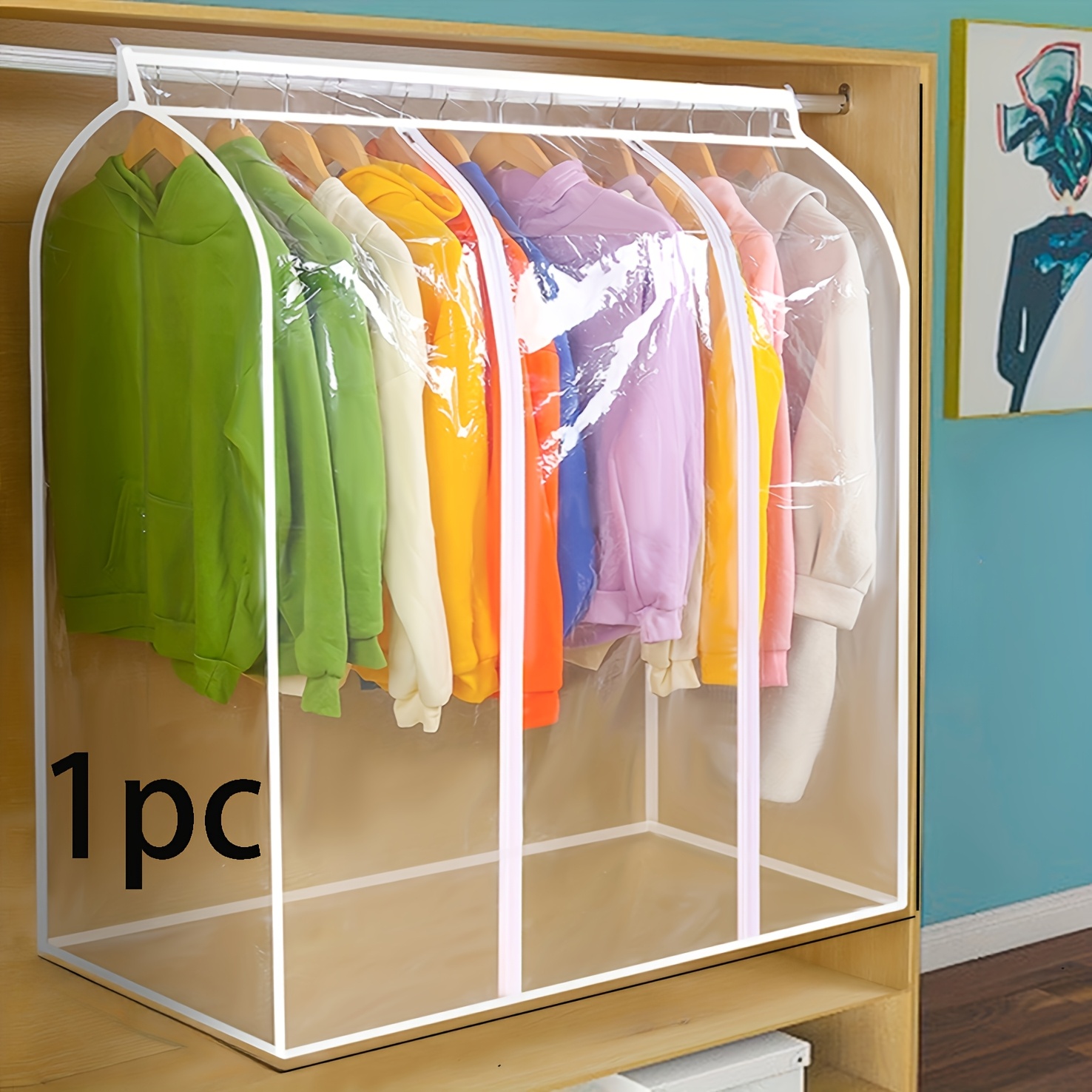 TEMU 코트, 정장, 드레스에 적합한 먼지 방지 기능이 있는 옷장 정리대 | 홈 및 기숙사용 대형 투명 지퍼 의류 가방