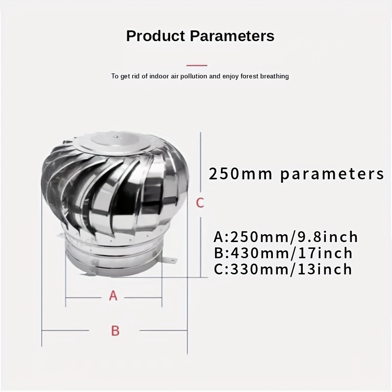 TEMU 250mm-450mm 비전동 스테인리스 스틸 지붕 통풍 회전 볼, 풍력 배기 냉각 후드, 공장 지붕에 적합한 저비용 통풍 장치