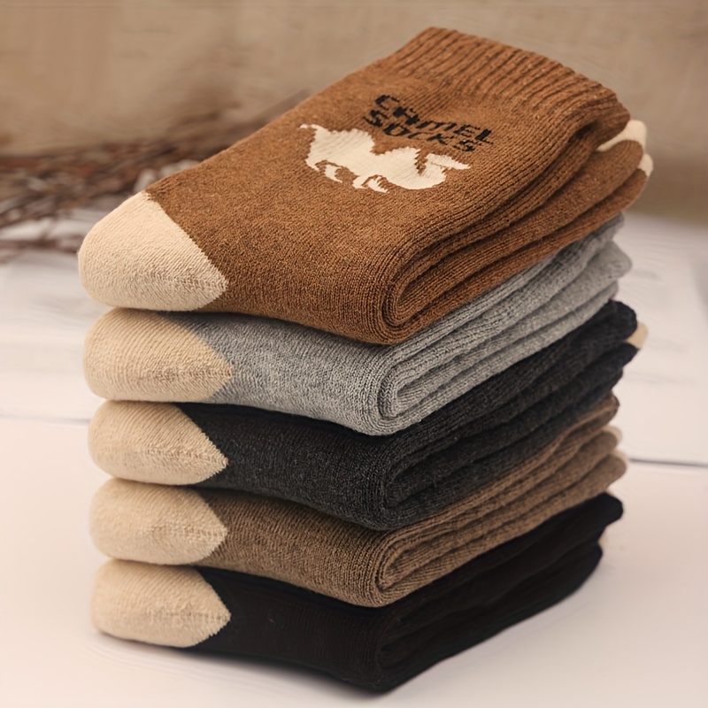 TEMU 남성용 보온 겨울 양말 5쌍 세트 - 두꺼운 쿠션 미드컬프 길이, 양가죽 같은 부드러움, 스키, 하이킹, 집에서 사용하기 좋음 - 다양한 색상 (베이지, 브라운, 그레이, 블랙, 화이트) - 크리스마스 선물 및 일상 겨울용으로 이상적 - 내구성과 편안함 - 추운 바닥 및 활동에 적합 - 다양한 색상으로 제공 - 남성 신발 사용에 완벽