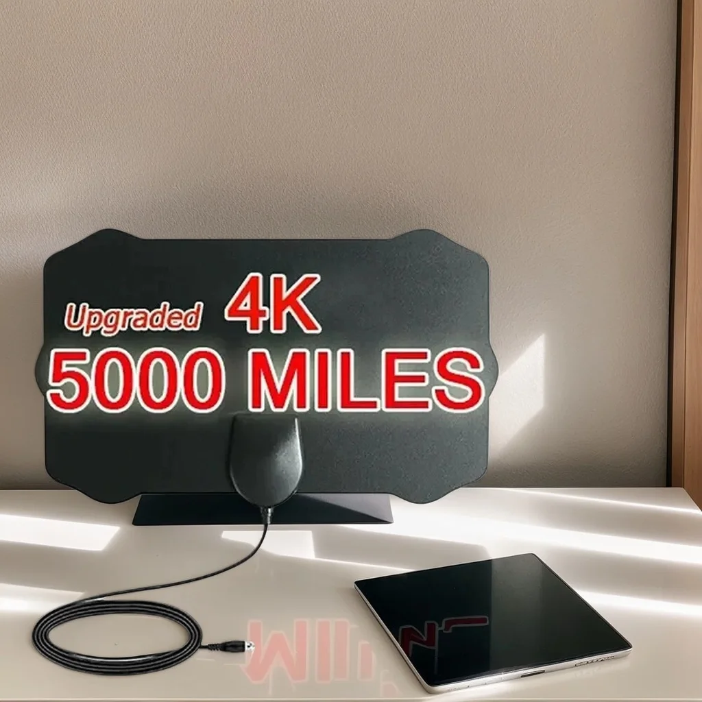 5000마일 HD 8K/4K 디지털 TV 안테나 - 케이블 및 DTV 수신용 25DB UHF/VHF DVB-T/T2 실내 안테나