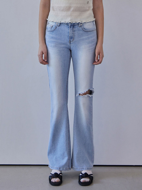 [헤인트] 유리엘 컷팅 롱 부츠컷 팬츠