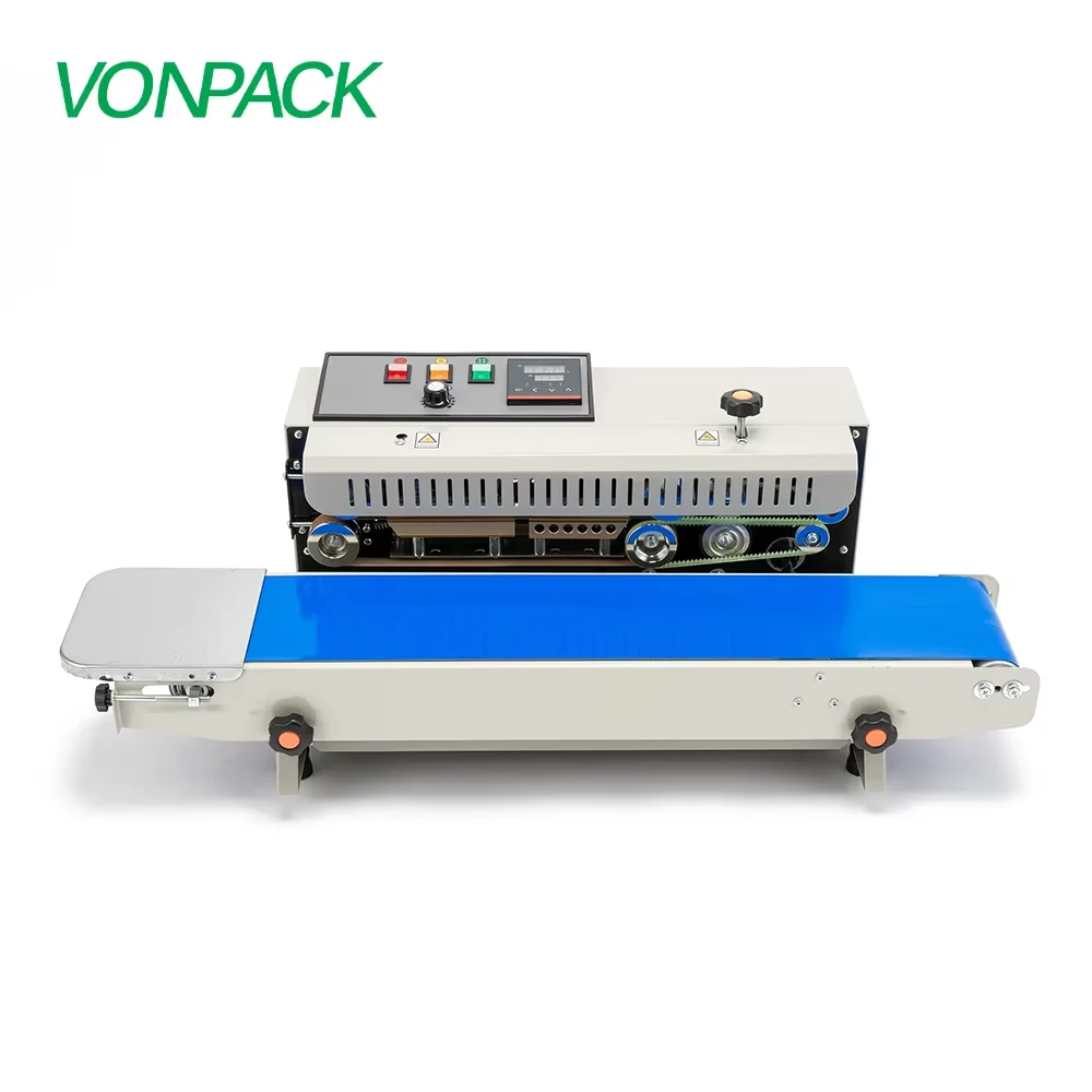 VONPACK FR-900 자동 수평 비닐봉투 필름 열 접착 연속 밴드 실러 기계 비상 정지 카운터