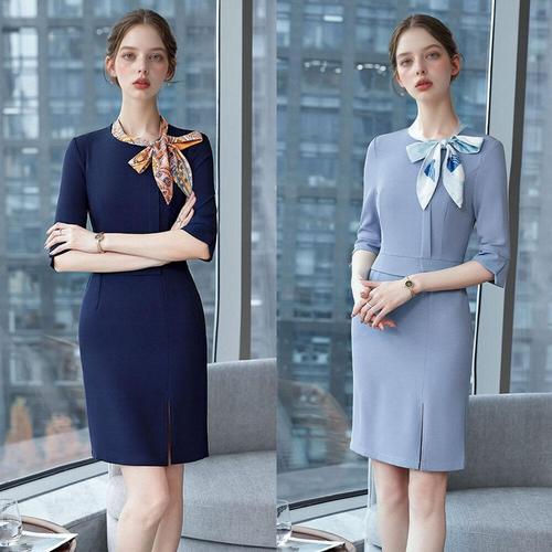 [교복몰]오피스 리셉션 패턴 스카프 슬림핏 H라인 원피스
