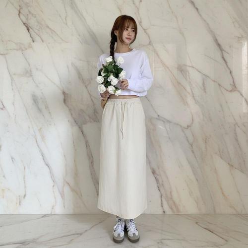 |KHK1909|여성 H라인 롱 포켓 끈 밴딩 스커트