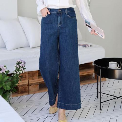 H스타일(JN)7002피버연청데님와이드팬츠 봄 여성 청바지 데님팬츠 와이드팬츠 허리밴딩 통바지