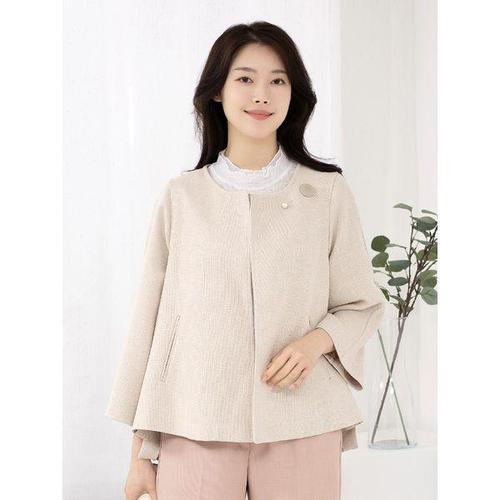 여성 여름 반팔 트위드 린넨 자켓 라운드넥 숏 재킷