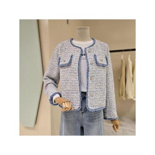 [에이비에프지]AOZ1QJ061 컬러 라운드 부클 라인 트위드 재킷