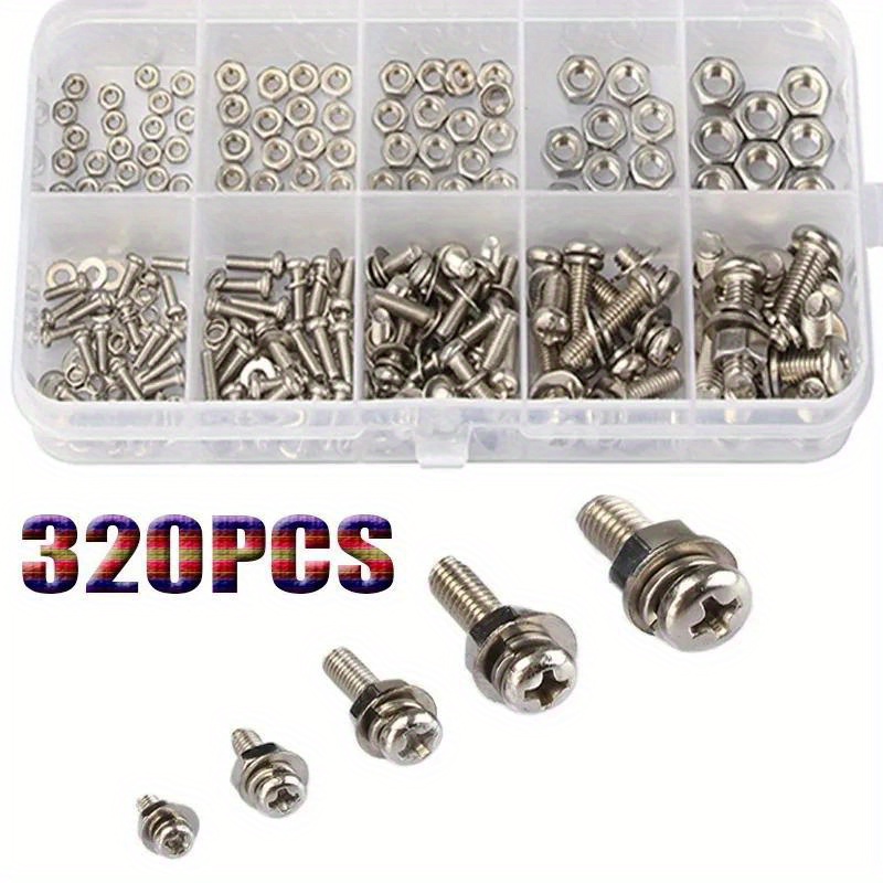 TEMU 320개 헤비듀티 전금속 헥스 볼트 너트 나사 & 와셔 어쏘트먼트 키트 - M2-M5 미터릭 하드웨어 세트 (필립스 헤드, 플랫/락 와셔, 플라스틱 보관함 포함) DIY 프로젝트, 자동차, 가구 조립 및 수리용 (완벽한 패스너 세트)