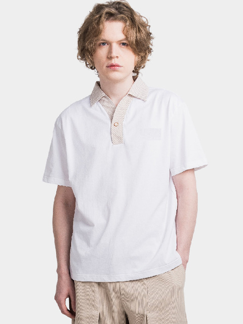 [커스텀어스] 스트라이프 우븐배색 Y넥 남자 반팔 카라티 CXS25MKKT612 WHI