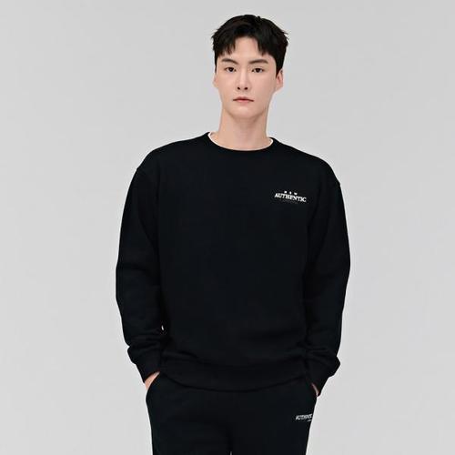 남성 [[24FW]] WHTS4D346BK [스테디셀러] 블랙 짜임 면 맨투맨티셔츠
