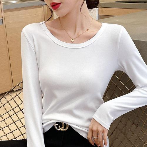 여성 라운드넥 슬림핏 기본 긴팔 티셔츠 WFKN92Q