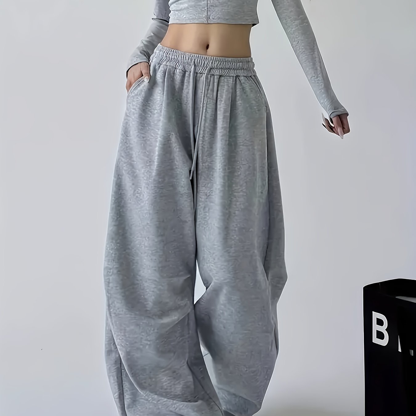 TEMU 여성용 캐주얼 루즈핏 조거 팬츠 - 탄력 있는 허리, 긴 길이, 단색, 포켓 포함, 가을/겨울에 적합한 편안하고 스타일리시한 조깅 바지