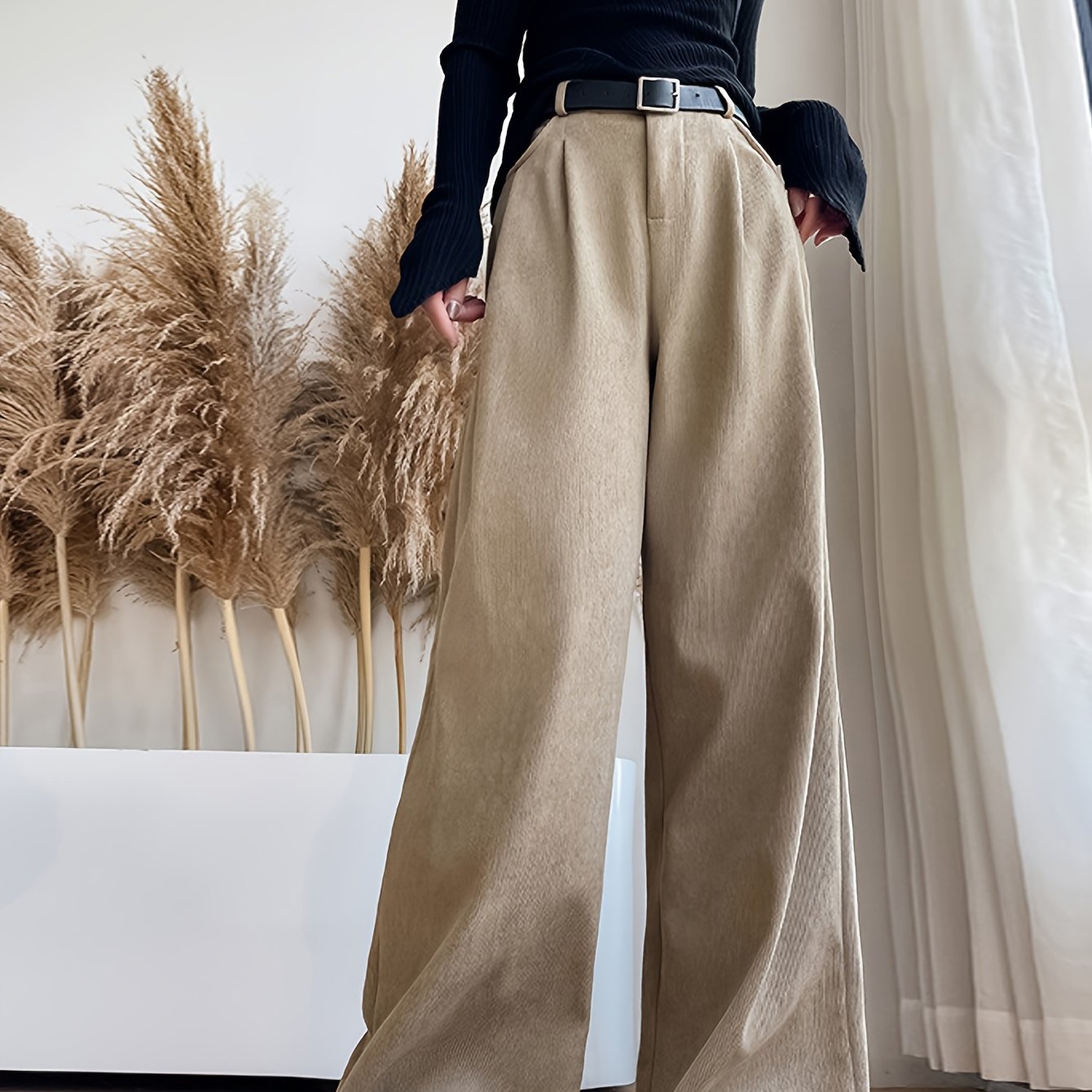 TEMU 여성용 와이드 레그 팬츠 - 버튼 클로저가 있는 우아한 트라우저, 사계절용 정장 및 일상용 여성용 바지, 사무실, 파티, 캐주얼 의상 - 부드럽고 따뜻한 하의, 파티 복장, 코듀로이 질감, 풍부한 색상, 맞춤형 핏, 쇼퍼스