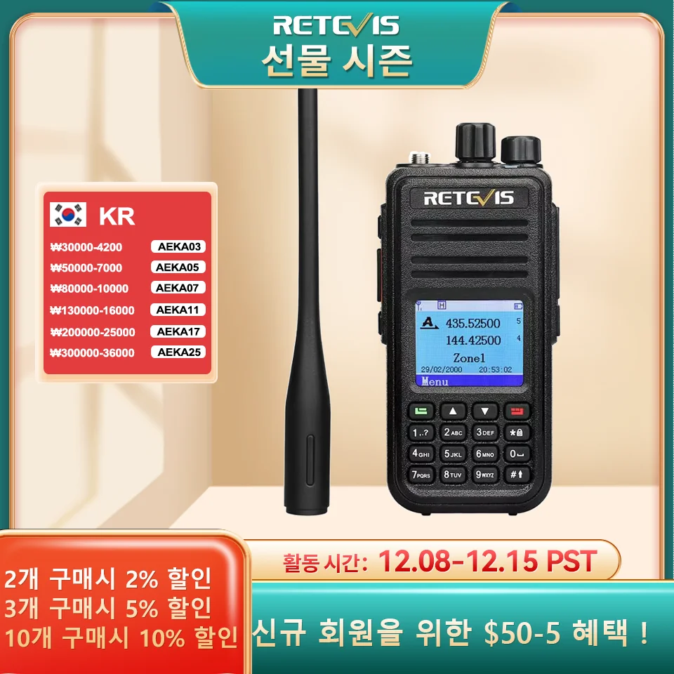 Retevis RT3S DMR 전문가용 워키토키 무전기세트 장거리 무전기 디지털 워키토키 햄 주파수 복사 기기 아마추어무전기 장거리 무전기 한국 고성능라디오 송수신기 자전거용 라디오 UHF VHF 지원 GPS APRS 기능