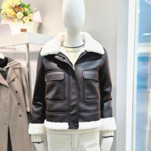 [더틸버리]빅칼라 페이크 레더 재킷MTRAM3FS52W_DG