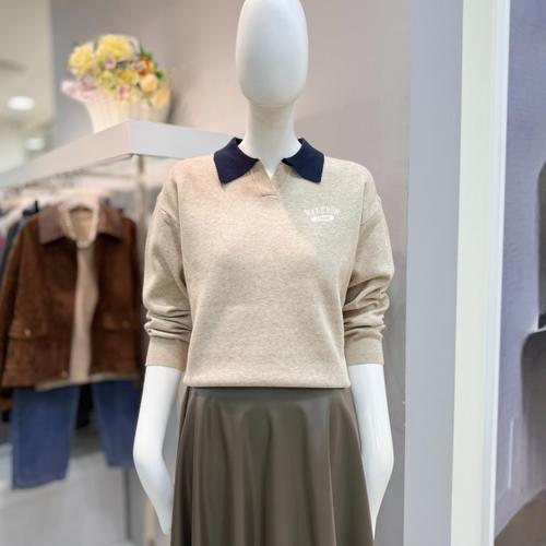 [더틸버리]슬릿 배색 칼라넥 풀오버니트 MTRAM1PO54W_DG