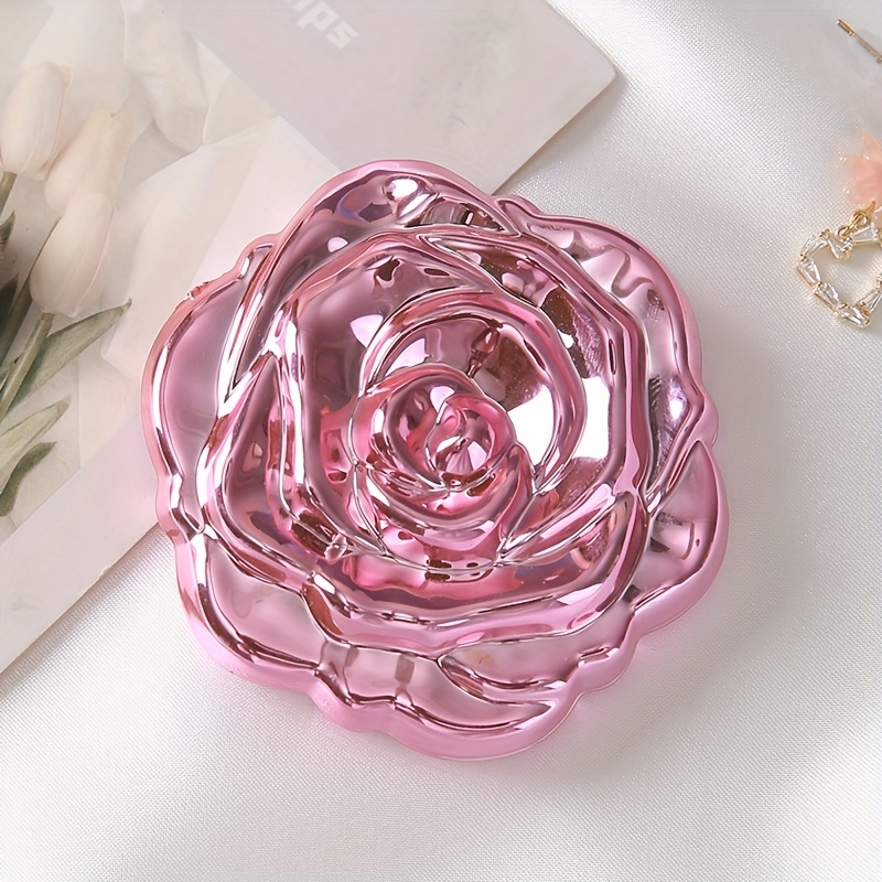 TEMU 우아한 장미 모양 거울 - 5잎 투명 유리 메이크업 거울, 광택 표면 & 매끄러운 가장자리, 휴대용 컴팩트 디자인, 결혼식, 데이 선물, 프로모션, 파티용 - 여성을 위한 장식적 & 기능적 플로럴 화장대 거울, 여행용 (홈 데코, 이벤트 또는 개인용으로 이상적) - 선물용으로 완벽, 반사 표면 & 섬세한 꽃잎 디자인, 메이크업용 소형 거울