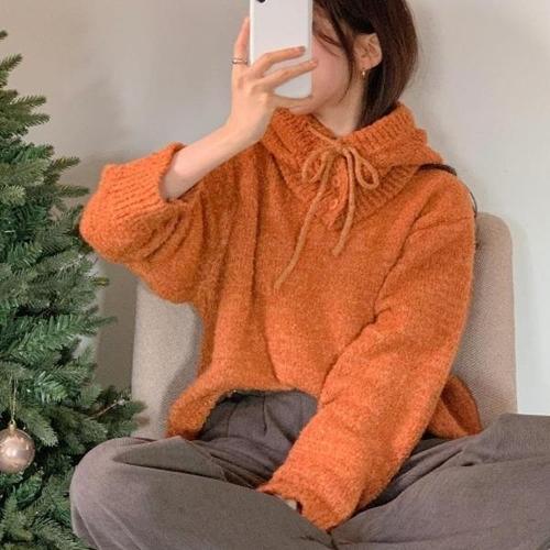 [라티움]Latium HC06 엉덩이길이 브이넥 니트조끼 배색 가을느낌 후드 셔츠블라우스 T2533bl26 (41299230)