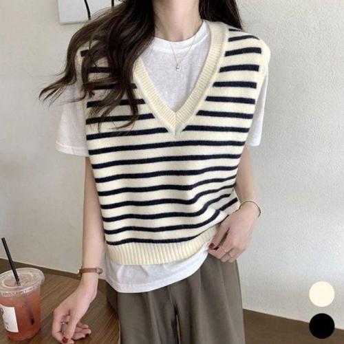 머스트해브 여성용줄무늬 브이컷 슬리브리스 WFK1YIR