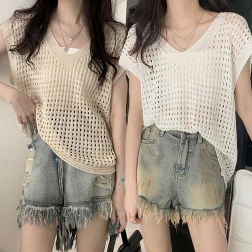 프리미엄 걸 겹쳐입기 홀뜨개탑 브이컷 베스트 WFK1YKT