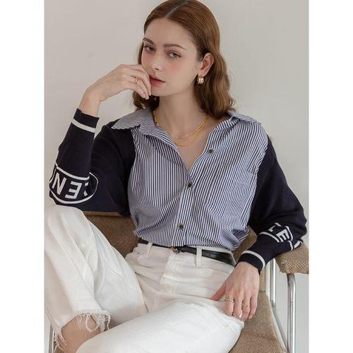 [르니앤맥코이]스퀘어 자수 패치 배색 블라우스 LM10BL300L