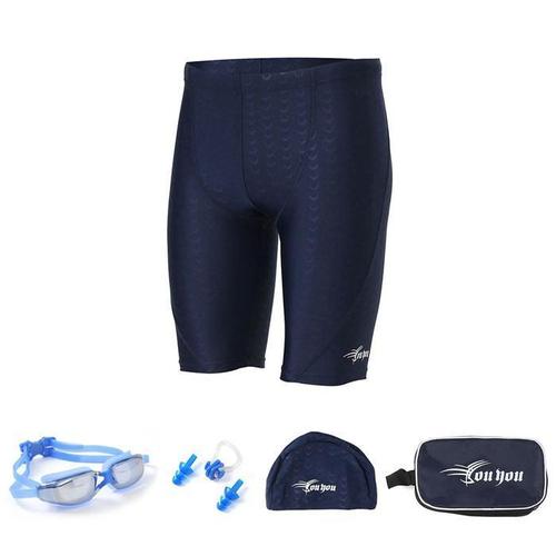 [JHQ2NQS8_53DR]실내 수영복 XL 네이비 사각 스윔수트 4부