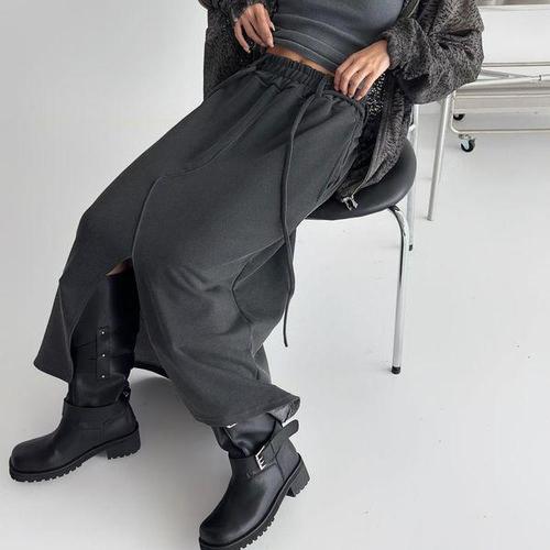[신상오픈런]여자 강르 A라인 트임 절개 스트랩 밴딩 코튼 롱스커트