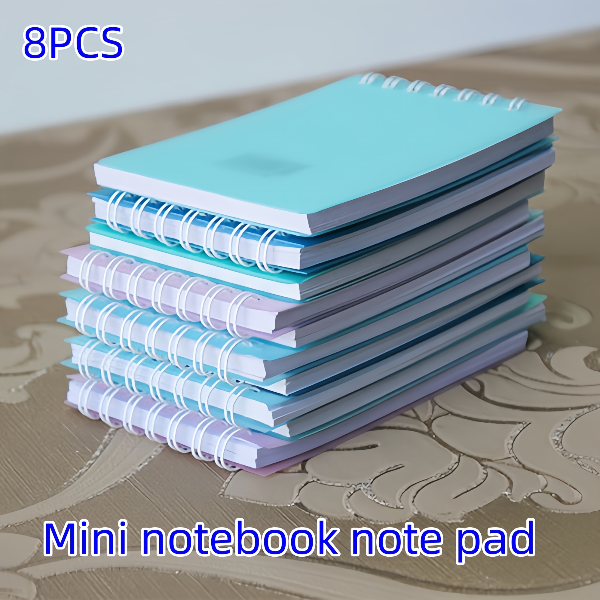 TEMU 휴대용 미니 노트북 세트, 8개 다양한 색상, 주머니 크기 스파이럴 노트패드, 가정/대학/직장/학교용 오피스 스타일 소형 노트북