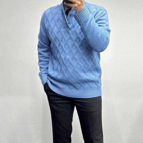 [바쏘옴므]바쏘옴므 블루울혼방 단추반폴라 다이아몬드 긴팔니트(WSZ4WN14ABU)