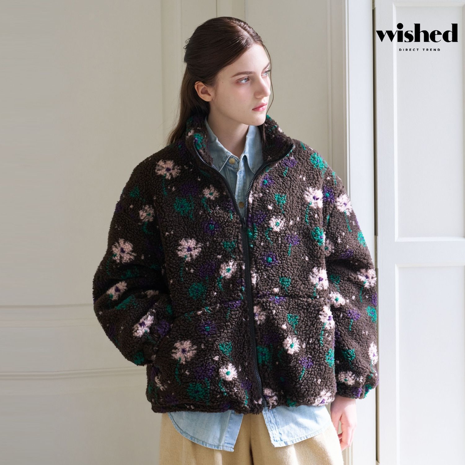 플라워 양털 플리스 집업 하이넥 자켓 (WICDJK006)