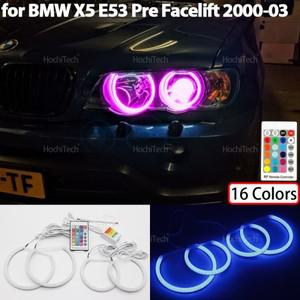BMW 호환 X5 E53 프리 페이스리프트 2000 액세서리 16색 RGB 코튼 라이트 LED 엔젤 아이 키트 링 리모컨