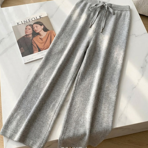 [보니제이]BONNIE J 여성 겨울 와이드핏 니트 롱팬츠 니트 밴딩