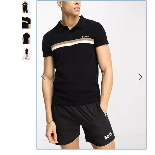 휴고보스 반팔 티셔츠 테리 비치 셔츠 검정 남자 비치웨어 패션 캐주얼 BOSS