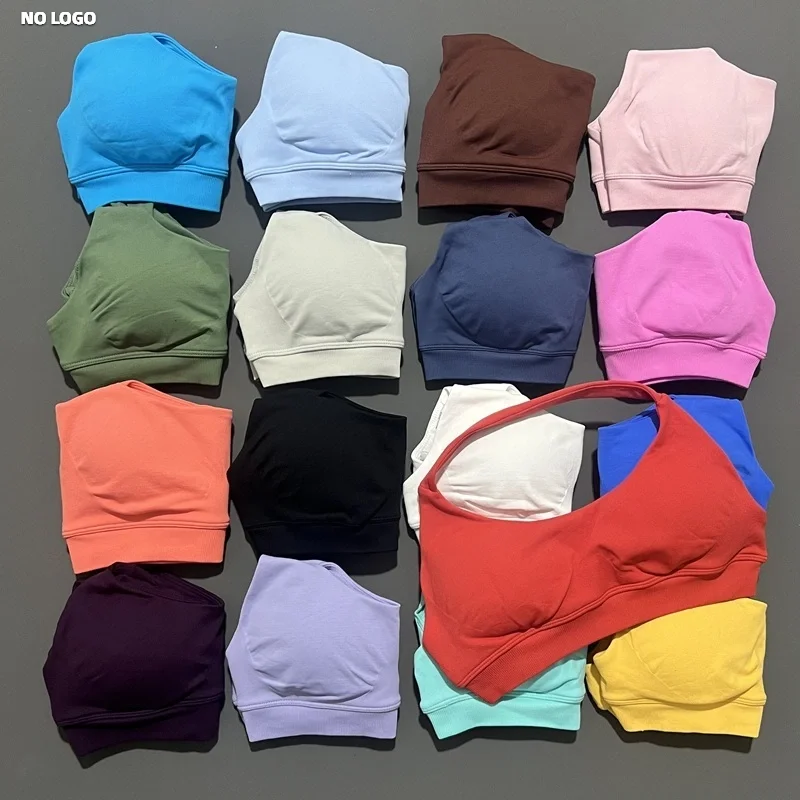 로고 없는 여성용 홀터탑 롱라인 스트랩 탱크 패드 요가복 피트니스 러닝 액티브웨어 짐 운동 상의