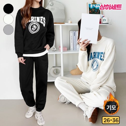 [상하의세트] 가비진 여성용 따뜻 기모 레터링 맨투맨+밴딩 조거 팬츠 바지 상하의 트레이닝 세트 3color