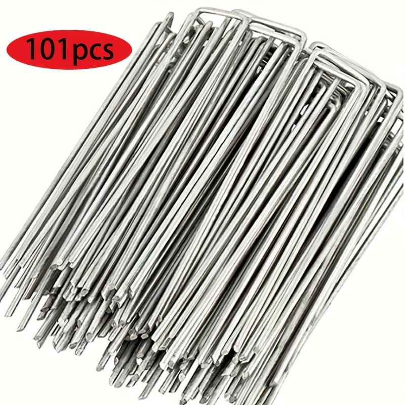 TEMU 51/101/201 팩 헤비 듀티 U 모양 주석 합금 텐트 스테이크와 워셔가 있는 야외 텐트, 정원 천, 경관 천, 잡초 방지 천 및 갈바니 스틸 바닥 펭/야외 텐트 바닥 펭/정원 장식 포스트 + 플라스틱 스페이서