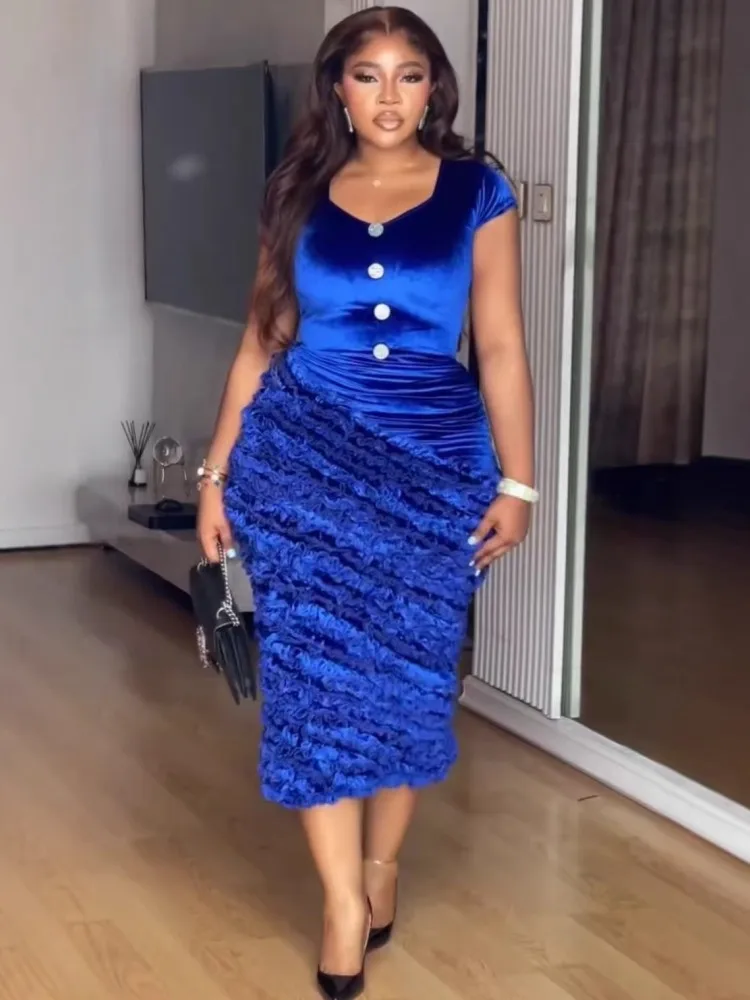 여성을위한 아프리카 드레스 우아한 봄 여름 짧은 소매 Dashiki 미디 드레스 숙녀 전통 아프리카 의류 Fairy Dreaes