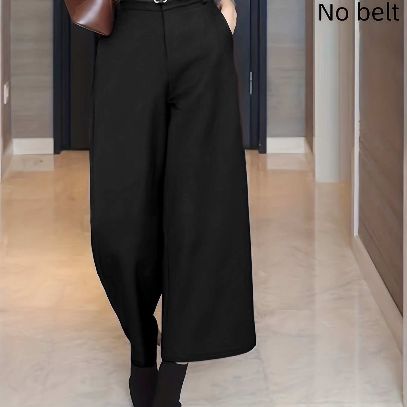 TEMU 여성용 우아한 가을/겨울 롱팬츠, 통근복 스타일, 하이웨이스트 편안한 크롭 트라우저.