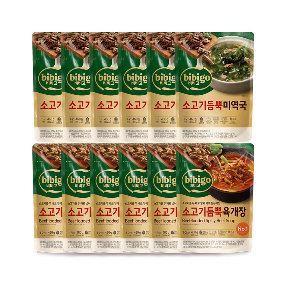 비비고 소고기 듬뿍 미역국 460g x6개+소고기 듬뿍 육개장 460g x6개