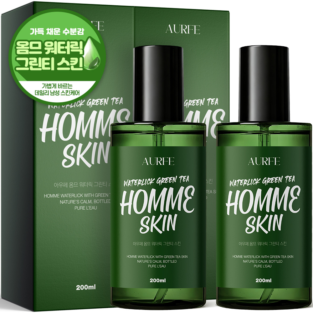 TEMU [1+1 구성] 아우페 옴므 워터릭 그린티 스킨 토너 200ml 2개 남성 남자 대용량 수분 진정 보습 올인원
