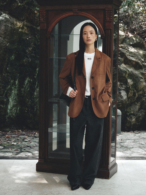 [뮤제] CONCORDE Oversized 3-Button Suede Blazer_Brick
