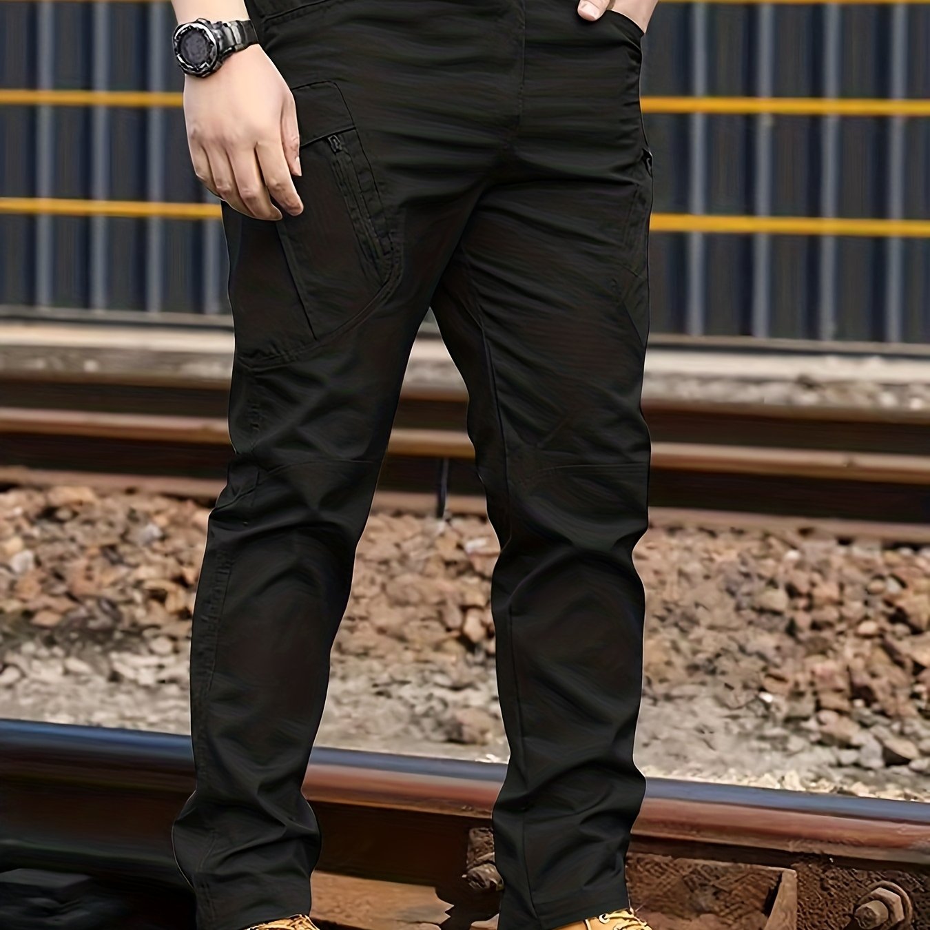 TEMU [1개 전술 카고 바지] 남성용 1개 전술 카고 바지 | 튼튼한 원단, 다중 포켓, 레귤러 핏, 단색, 야외 작업, 하이킹, 오버롤, 야외 등산 및 캠핑 바지에 적합, 내부 포켓, 봄 & 가을