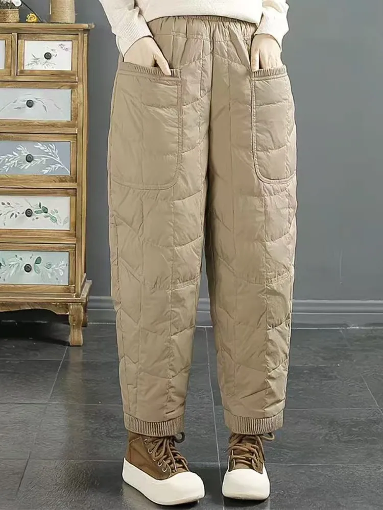 TEMU 우아한 여성용 하이웨이스트 컴포트 조거 팬츠 | 루즈핏, 중간 신축성, 단색, 운동 및 피트니스에 적합, 올 시즌, 크롭 기장