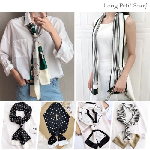 [노다지닷컴] 여성 실크 롱 쁘띠 스카프머플러 여자 트윌리 스카프 봄 가을 간절기