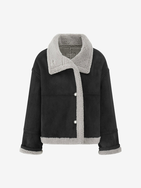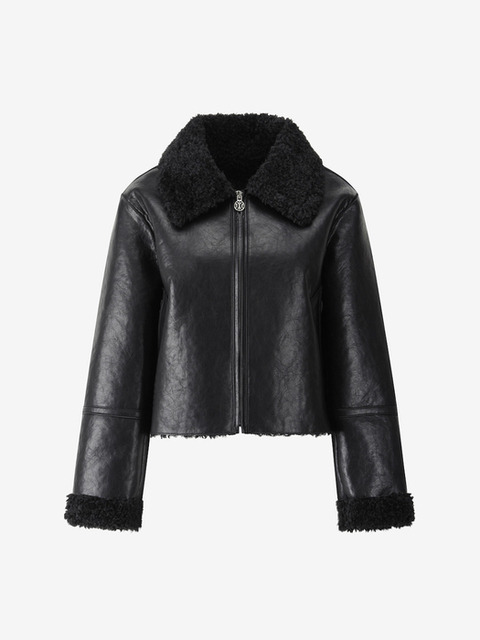 [듀엘] 루즈핏 에코 레더 무스탕 BK_L254PSG756