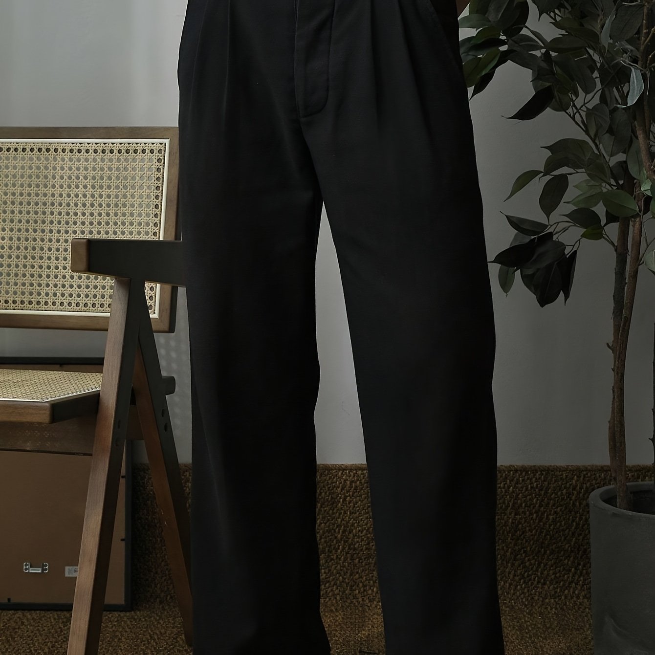 TEMU 남성용 하이웨이스트 레그 드레스 팬츠 - 빈티지 스타일 플리츠 디자인, 단색, 사계절 내내 편안한 착용감, 오피스 및 캐주얼 웨어, 레귤러 핏 포켓, 신축성 없는 원단, 출퇴근 또는 홈 릴렉스, 오피스룩에 적합